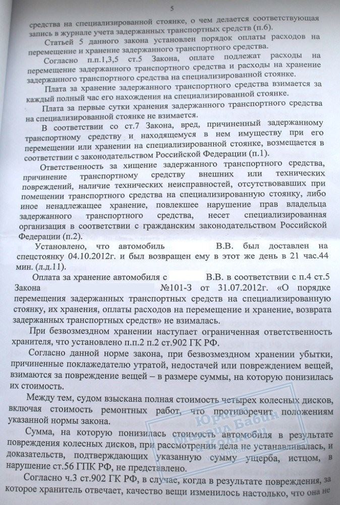 Руководитель нашей компании обжаловал эти незаконные решения в Президиум областного суда, указав в жалобе не только на незаконное взыскание всей стоимости колёсных дисков только из-за царапин, но и представив доказательства наличия этих царапин задолго до даты их появления, указанных В.В. в своём исковом заявлении.